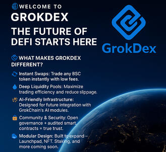 With its advanced DeFi infrastructure, token creation tools, launchpad system, and integrated NFT mechanisms, GrokDex drives all economic activity across the chain.GrokDex Modules1. GrokSwap – Token Swap System2. GrokMint – Token Creation Panel3. GrokLaunch – Presale & Launchpad System4. GrokLock – Token/LP Locking Module5. GrokNFT – NFT Minting & Listing Panel6. GrokScanner – Token Analysis Tool7. GrokBoard – Ecosystem Analytics Dashboard8. GrokPresale – ICO/IDO Management ModuleOnce GrokDex operates directly on GrokChain, it will act as the primary financial center of the entire ecosystem.---5. GRC Token – The Fuel of the EcosystemToken: GRC (GrokChain Token)GRC functions as the ecosystem’s main utility and governance asset, powering:– Payments
